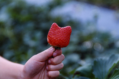 イチゴ狩り農園にて、ハローキティもどき発見。