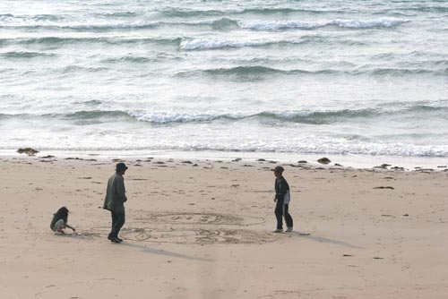 ビーチに出て、砂浜にだれかの顔の絵を描いているーーー。