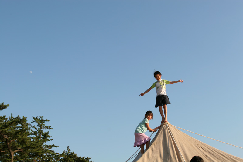 砂浜に建てた、ひと夏だけの期間限定テントに登り