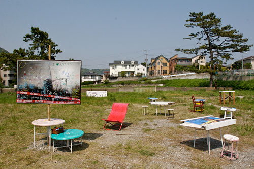 テーブルを置いたりして、さぁどうぞイタズラ書き三昧! という企画。