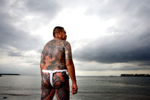 ビーチのテキ屋を仕切る、アニキ。