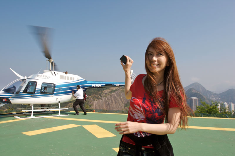「キャー!」と、ヘリから飛び降りて