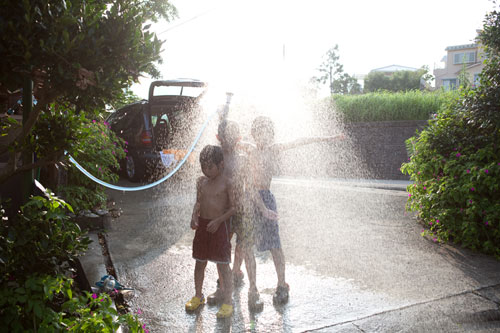 海から戻ると、まずは玄関口のシャワーで砂落とし。
