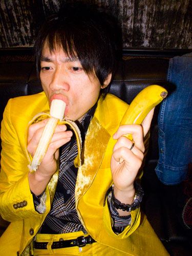 本番前に、黄色いバナナを腹の中にねじ込み、準備万端。