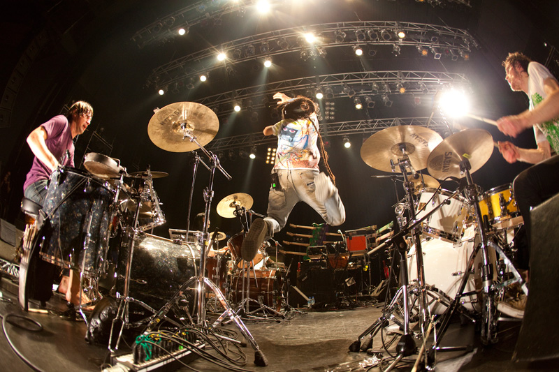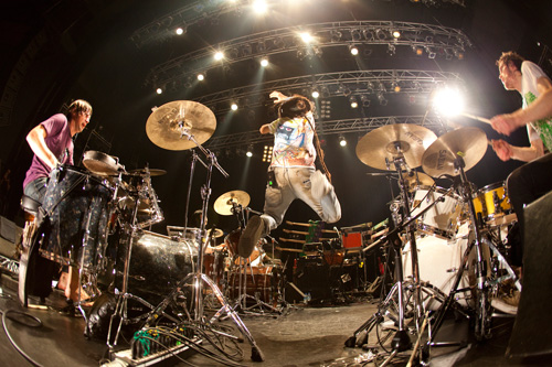 計7台のドラムを設え、文字通り<爆発的な>ステージを見せた。
