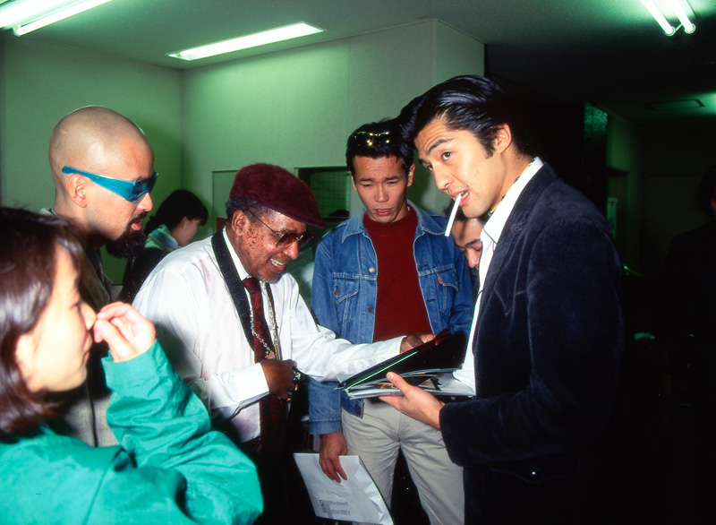 おれが撮った写真を見ながら、若き日のスカパラメンバーと談笑。