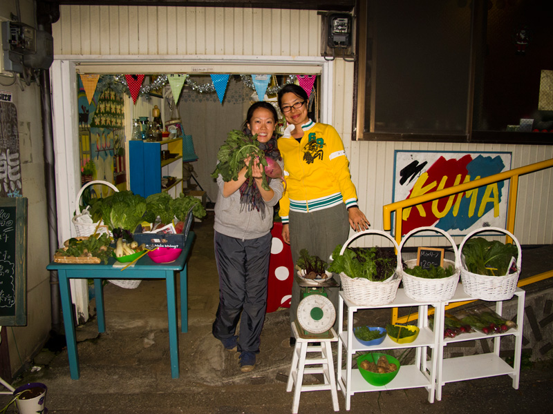 昼間、週に何回か、女のコたちが野菜を売ってる。
