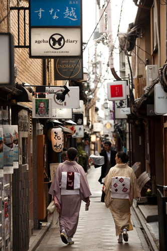 ここはやはり京都先斗町、着物のオネイサン達が似合う街。