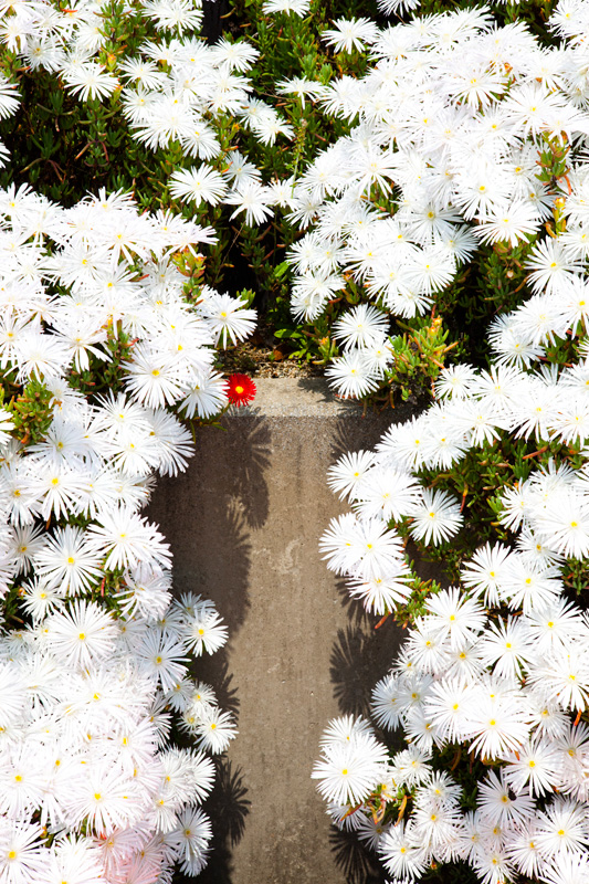 ポツンと赤い花が、ひとりぽっちで静かに咲いている。