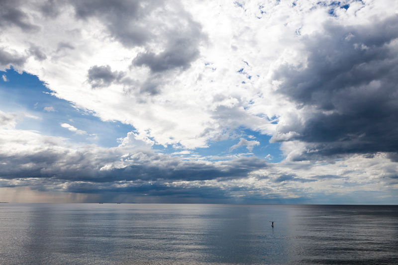 沖へ、沖へとパドルボートで進む、うちの次男。