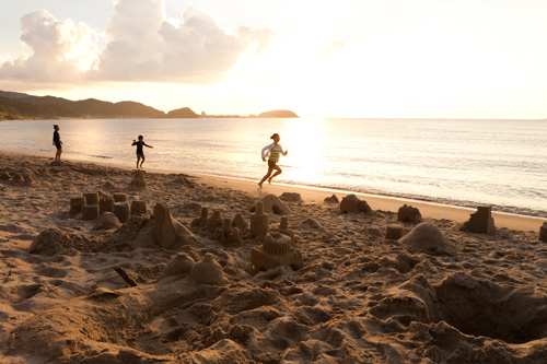 サンドアート作りに飽きて、やがて波打ち際を走り回る子供たち。