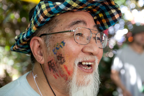 最近のフェス・アイテムとしては、ブームらしい。マル眼鏡も。