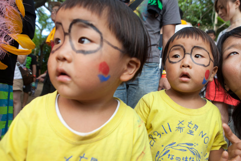 かわいい双子のボディーペイントは まるでダメオ風の、まるめがね☆ 本人たちは、ステージ上のブレークダンスに夢中。