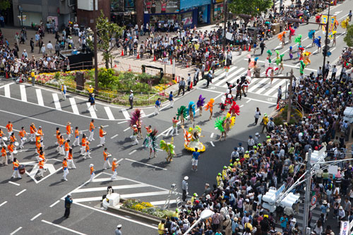 会場のロビーから、お祭りパレードを見下ろすことができた。