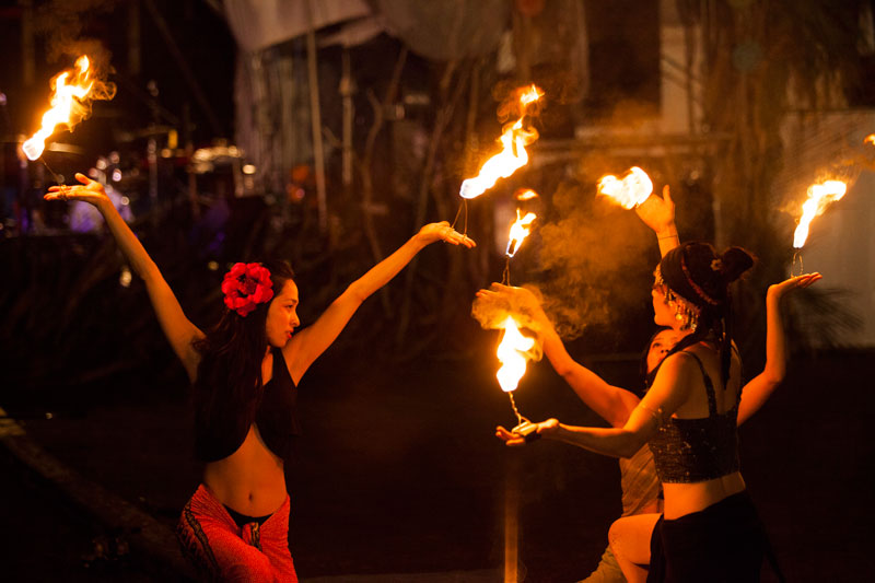 ファイヤーダンスは、チーム岡田拓治のキレイどころたち。