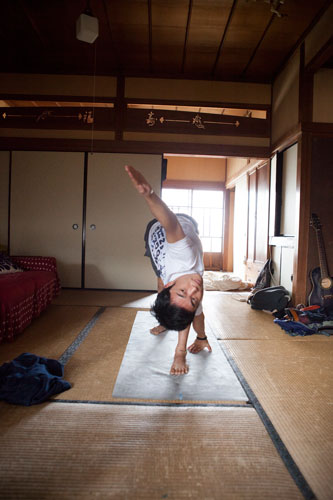 一緒に友人宅に泊まって、朝飯前YOGA。