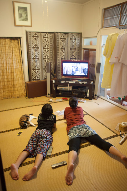 畳の上でストレッチしながら、DVD鑑賞が定番。