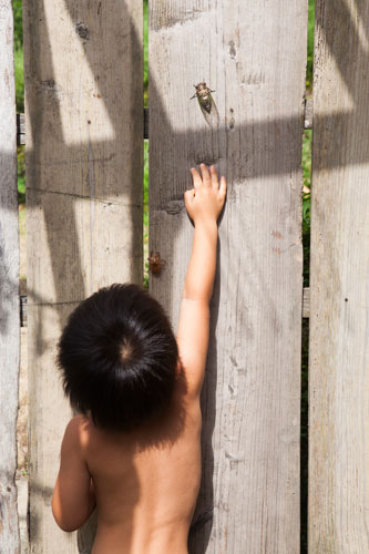 まだ、抜け出したばかりで、羽が乾くのを待つ蝉。