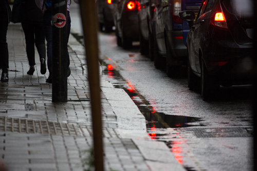雨の夕方、切ないラッシュアワー。 ところ違えど、早く帰りたいのは皆同じ。