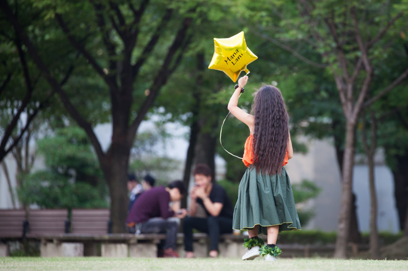 少女のもつ風船には、ハワイ語で「天空の奇跡」という意味の メッセージが書かれていた。 みな、同じ空の下に住む地球人同士。仲良くしよう。