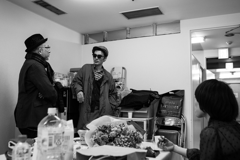 今月末、夢にまで見たEGO WRAPPIN’の写真集を出版します。 彼らは今年で結成20周年。 縁あって僕はデビュー後から撮り始めて 16年になるのですが、 これが実に、メチャかっこいいのができました。 いっとくけど、これ最近流行りの自画自賛じゃありません。 もう一回いいます、 メッチャ、かっこいい、です。 ので、今週は出版記念特集! ********** 2012年に亡くなった川勝正幸さんと、 PARCOの楽屋で。 このときは、Ego Wrappin'のキネマの写真集発売記念の トークショーだった。 @渋谷PARCO 2011/11/14