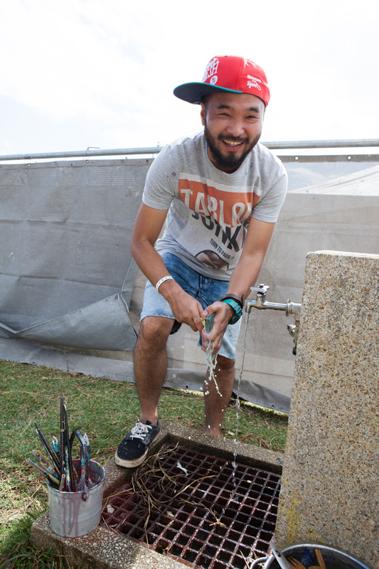 海外での評価も高いDRAGONが、N.Y.へ旅立った。 彼は作風もさることながら、キャラも皆に愛されるやつ。 @Zanpa JAM・Okinawa 2015