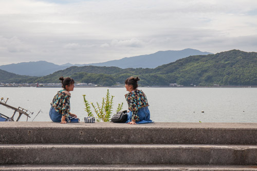 ブラウスを着た女子ふたり組、が楽しげにデート中。