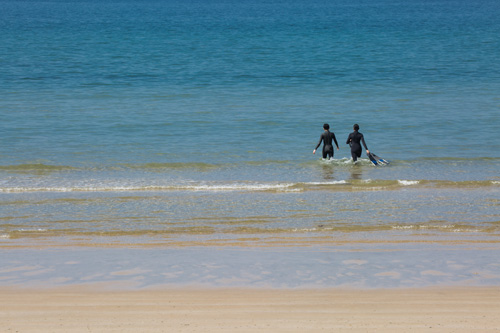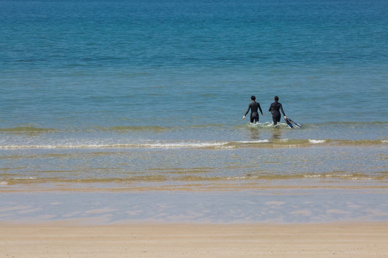 美女ふたりが「泳ぎま〜す」というので、レンズ越しにお見送り。