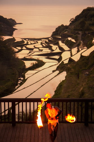 この季節にだけ見れる、夕暮れの「鏡畑」の前で。