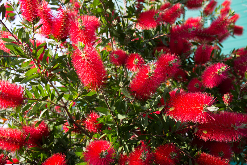 隣の家の庭に咲いてる、ビン洗いブラシみたいな花は