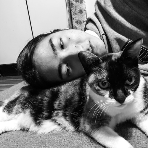 18歳になったハダカレンジャー2号・次男と、愛猫ギズモ。