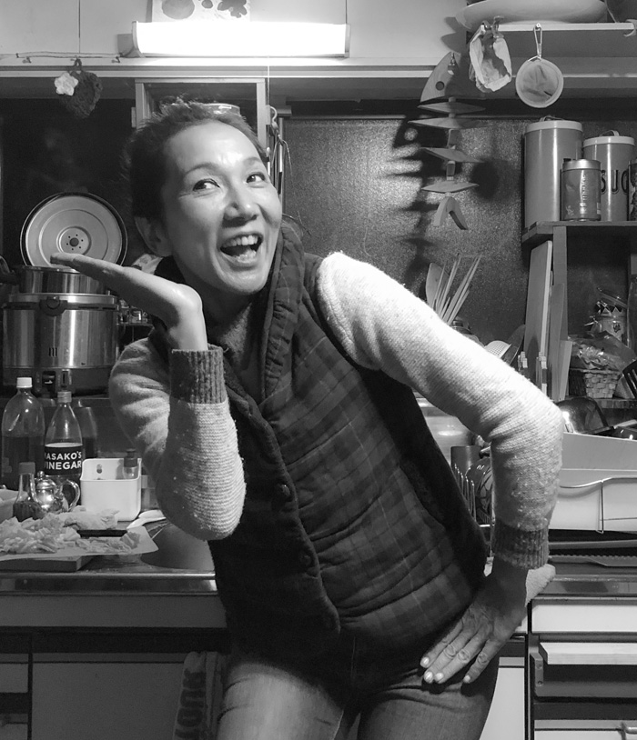 ゴキゲンに踊る彼女を、プライベート・オフィス(わが家の台所)で激写。