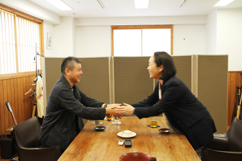 | 西水 | Thank you. です、 わかってくださって。 (立ち上がり、手を差し出す) |
