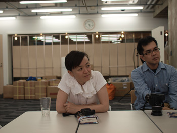 昨日、夜、水たまりがあってね、 水たまりにビルが映ってて すごいきれいなんだけど、 それを撮りたいなと思いつつ、 むこうから人が来て これ、スカート覗きだと 思われたらどうしようって(笑)。 |