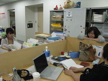 雑然とした机が、主役みたいですね‥‥。 |