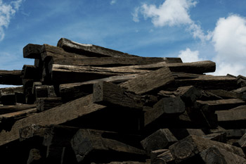 | はい。で、もらいに行ったんです、枕木。 そしたら、あれ、 重油を染み込ませてあるんですよ。 |