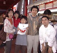 | さて。第1回の「グッドマンを探せ」ですが、 みごとに逮捕されちゃったんでした。 ああ、賭をしなくてよかったよ。 じゃ、そのレポートをお読みくださいませ。 探されたグッドマン・レポート やったーっ! 見つけてもらったーっ! 「快哉を叫ぶ」ってこんな感じ? やっほー。ひゅー。ぶい。 というわけでグッドマンです。 5月3日の憲法記念日、 行ってきました、人ごみの横浜へ。 「追いかけてヨコハマ」 ですよ、ほんとに。 編集部全員が、 「誰にも声をかけられない」 と決めてかかっていたんですよ。 こんなことなら「見つけられるほう」に 賭けとけばよかった。 その日、午前10時に新宿区のアパートを出て、 妙齢の婦人の運転で一路横浜へ。 第三京浜が混んでいたので下の道をすすみ、 桜木町に着いたのは昼過ぎでした。 そこで横浜在住のもうひとりの妙齢の婦人と合流、 3人でとりあえず「クイーンズスクエア」に行き、 サンドイッチなぞを購入、広場に座って 軽く昼ごはんをすませます。 「ここで、誰か、見つけてくれるかなあ」 と、ちらりと思ったんですが、誰しもが 楽しい行楽の真っ最中。 誰ひとり声をかけてくれません。でも、 「この人ごみの中に『ほぼ日』の読者がいるかも!」 と思うと、妙に嬉しい。 実は、ワタシ、けっこうキアイ入ってたんですよ。 半ズボンもシャツも新調したし。 だから、口では 「ま、これだけ人がいるとね……」 なんて言ってましたが、あの日のぼくは あなたに見つけてもらうためだけに生きていたと いっても過言ではなかったんです。 そんなこんなの勇み足で大混雑の遊園地 「よこはまコスモワールド」へ。 もう、すさまじい人だったんですよ。 まず入り口の前で並ぶ。入っても並ぶ。 ひとつの乗り物に1時間、2時間待ちはあたりまえ。 並んでいる人と歩いている人の境界線が よくわからないくらい、人がいるんですよ。 「あちゃー。これじゃ、探そうったって、 探せないんじゃない?」 知り合いだって、はぐれたら二度と巡り会えそうにない。 それでもいくばくかの期待をはらみつつ、待ちました。 最初に並んだのは「クリフ・ドロップ」。 丸太をイメージしたライドに乗って 水流を巡る急流すべりです。 これが70分待ち。 誰も来ず。 続いては世界初の水中突入型のローラーコースター 「バニッシュ!」。 これは130分待ちと、立て看板を持ったお兄さんが 教えてくれました。 ま、待ちましょ。 並びはじめて10分位したところでしょうか。 つづら折りの列の、いちばん外側からひとつ内側に 曲がろうとしていたその瞬間! 30代後半とおぼしき男性が声をかけてくれました。 「グ、グッドマン、さん、ですか……?」 はっ。あんた誰。じつはその時、なぜかポッカリと この「大捜査線」のことを忘れていたんですよ。 さっきまではあんなに執心していたのに。 友達かなと思っちゃったんですよ。でも見覚えがない。 するとその方は、 「あの、インターネットの……」。 それでわかりました。これは、そうにちがいない! ぼくはすかさず言いました。 「合言葉を!」 「…………ニヤリ」。 これで決まりです。おめでとうございます! あなたが一番です! その方は赤崎正幸さんとおっしゃいました。 しかし、赤崎さん、しきりに上のほうを見て、 手を振っています。見上げると、ローラーコースターの 乗り場に近い高台から、女性がひとりこちらを見て 手を振っていました。 「おーい! 一番だって! 降りといでーっ!」 と赤崎さんは声をはりました。 「妻なんですよ。上から見て、あの人がそうに ちがいない、って言うから、僕が降りてきて 確かめたんです」。 おお、美しき夫婦愛です。 「家族全員で探した甲斐がありました」。 ええっ? ご夫婦だけじゃないんですか。すると、 ちょこまかと男の子が駆け寄り、 「アタリ? アタリ!? やったーっ!」 と叫びました。長男の正和くんでした。 手には、プリントアウトした僕の顔写真。 かなりホンキで探してくださったことがうかがえます。 やがて奥さんの久美さんが、長女の千鶴ちゃんを 抱っこしてやって来ました。 聞けば、この日は、二人が知りあった大学のテニス サークルのOB会が、みなとみらいのホテルで あったのだそうです。 その日の朝、出がけに『ほぼ日』にアクセスした 久美さんがこの「大捜査線」を発見、 探してやろうじゃないの! と 皆に提案したのだそうです。 昼過ぎから乗り物にも乗らず、家族4人は徹底的に みなとみらいの遊園地を洗ったのだとか。 あまりの人の多さにほとんどあきらめかけていたとき、 ベージュの半ズボンに黒いリュックのぼくを 発見したのだと。 かなりの興奮状態でおられました。 さっそく、『ほぼ日』ロゴ入りTシャツを贈呈、 記念写真をとらせていただきました。