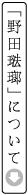 | 野田 | 恥ずかしい(笑)、 あとで叱られます(笑)。 |