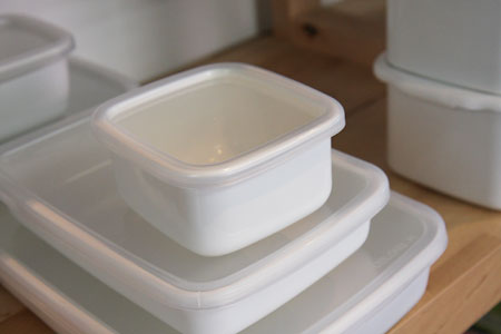 | 野田 | 以前はいわゆるラップのようなものを 容器にかぶせて冷蔵庫で取っておいたわけです。 そうした方法も便利なのですが、 どうしても他の食べ物の匂いを吸着してしまって 作りたてのおいしさが すぐになくなるような気がしていたんです。 男の方が「残り物は食べない」とおっしゃるのは そういう理由なのかなあ、と。 |