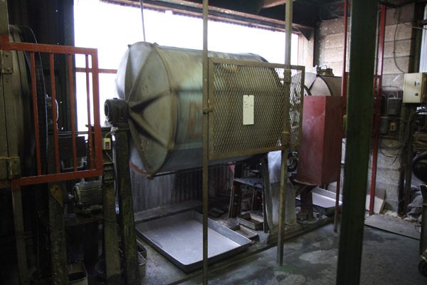 ぐるぐるとまわし、ガラス質を粉砕します。