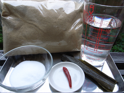1本のまま、昆布は4センチ角くらいのを1片混ぜます。