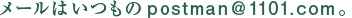 中継の感想や矢野さんへのメッセージなどは メールでpostman@1101.comへどうぞ。 |