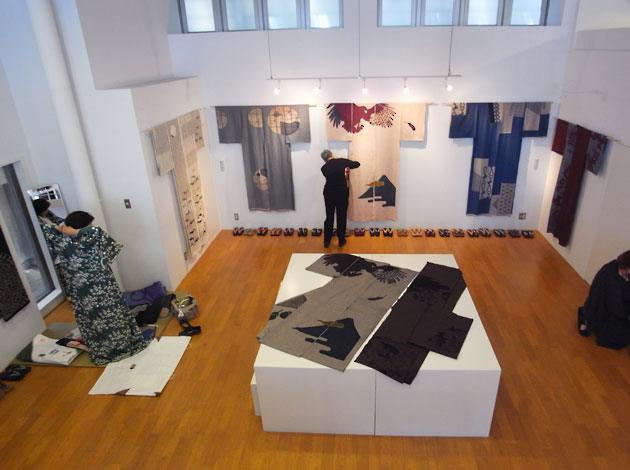 左が小倉さん。きものでお迎えしようと、着替え中です。