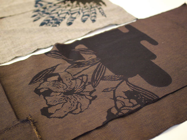同じ「美人三景」を、墨色で、遠州縞に染めたもの。