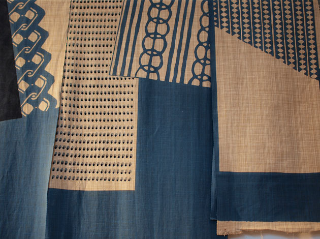 パッチワークのように寄せて染めた作品です。
