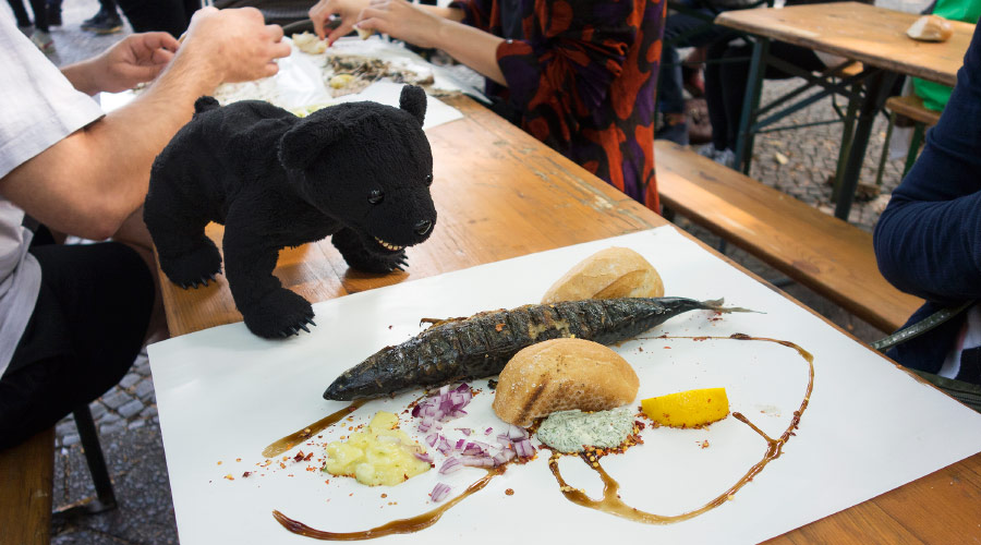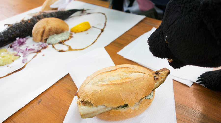半身の鯖が入った鯖バーガー(3.5ユーロ)ね。