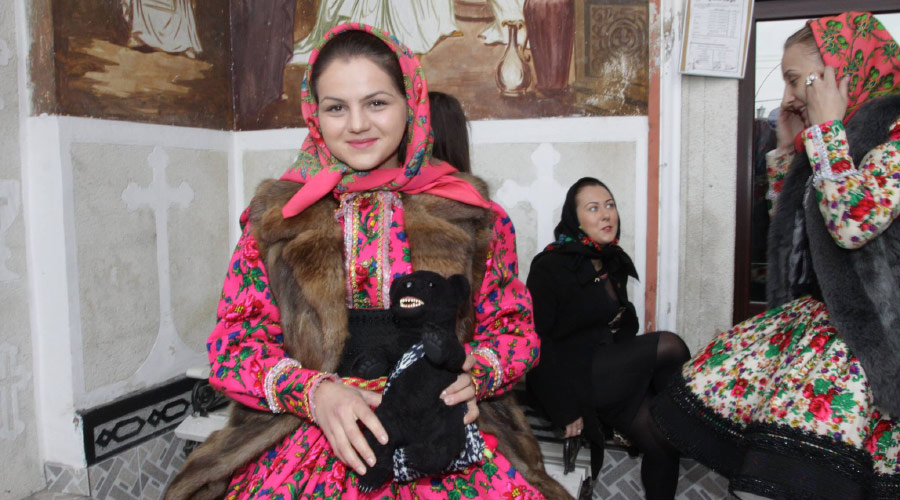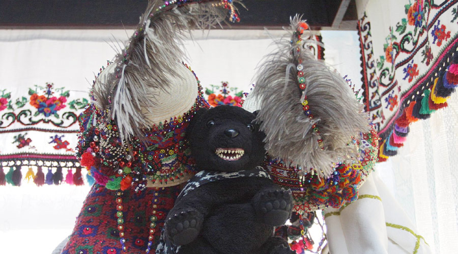 民族衣装を着た人形がお出迎え。きれいですよねー。
