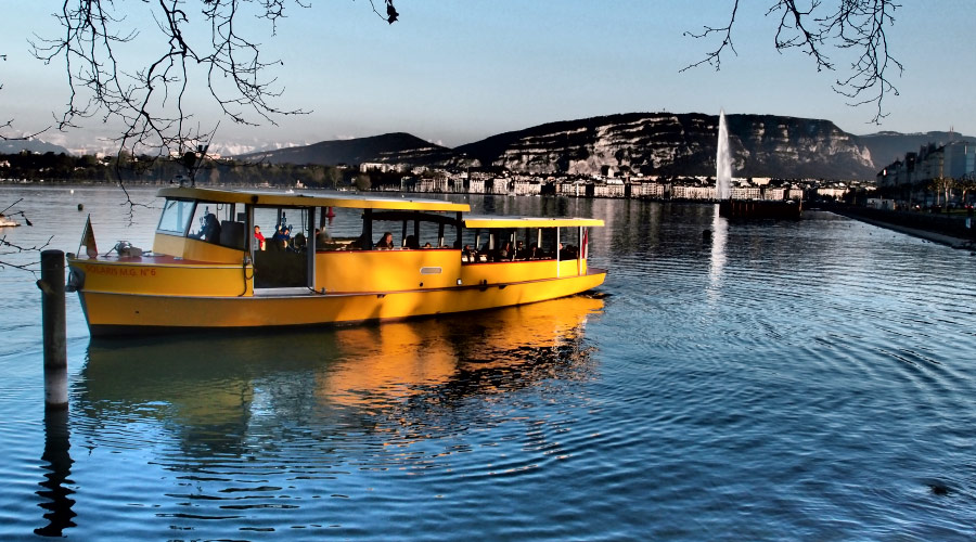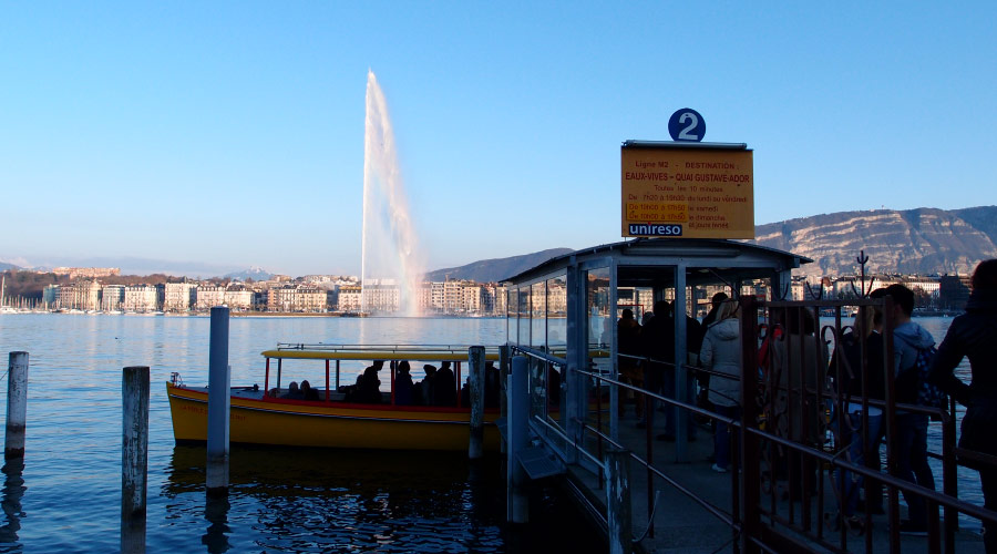 向こうに見える噴水は、Jet d'Eau (ジェッドー)という、