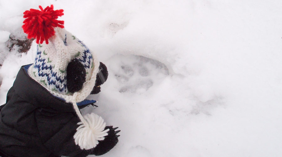 つぎの日の朝、外へ出てみたら、だれかの足あとが。