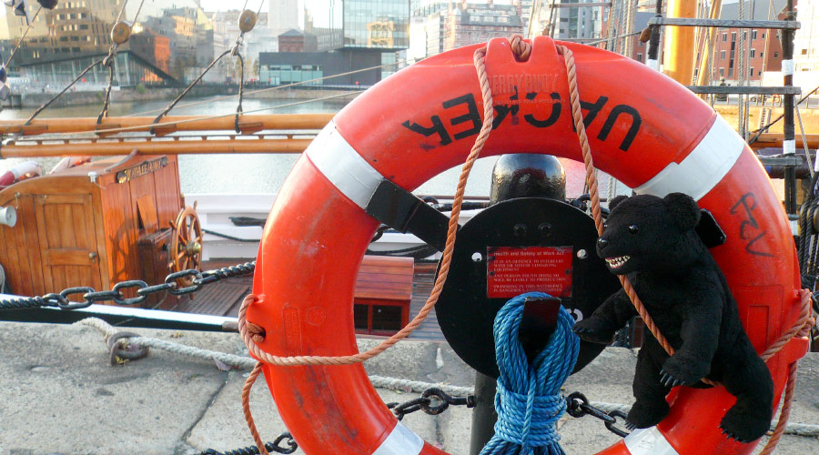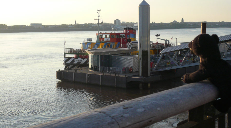 マージー川を見つめながらたそがれる、りありー?。